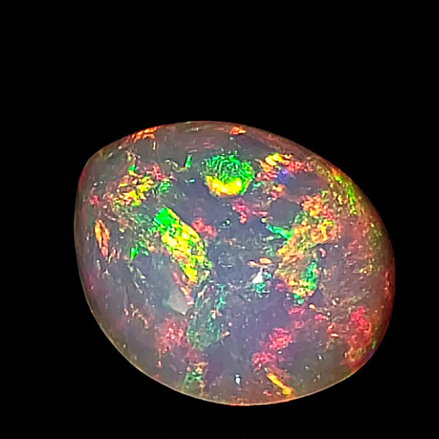 Ethiopian Welo Opal Extra Large 19 Cts! Cosmic Galaxy Fire Opal Gemstone! Pear Cabochon Crystal Stone, Natural Rainbow Ethiopia Welo Opal!