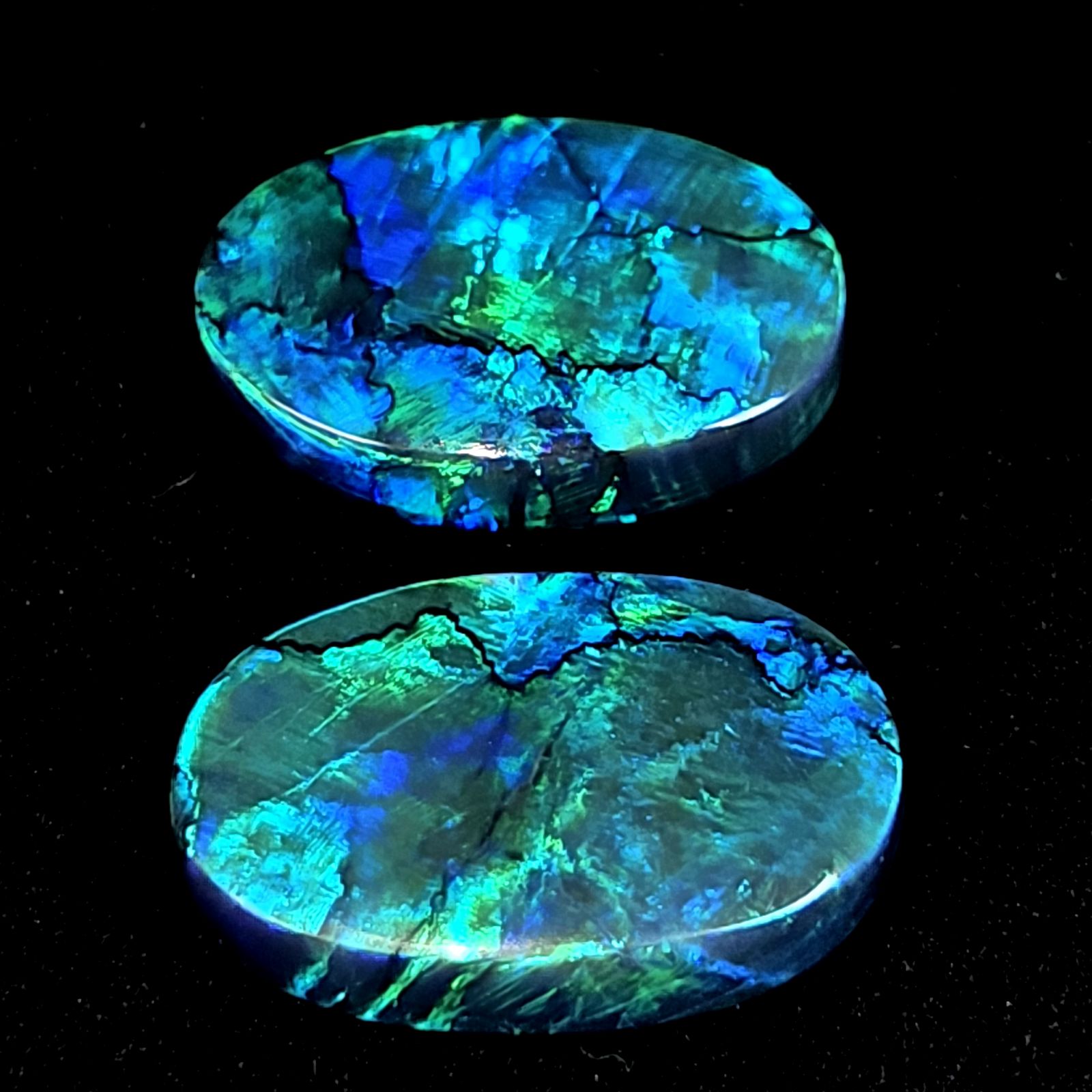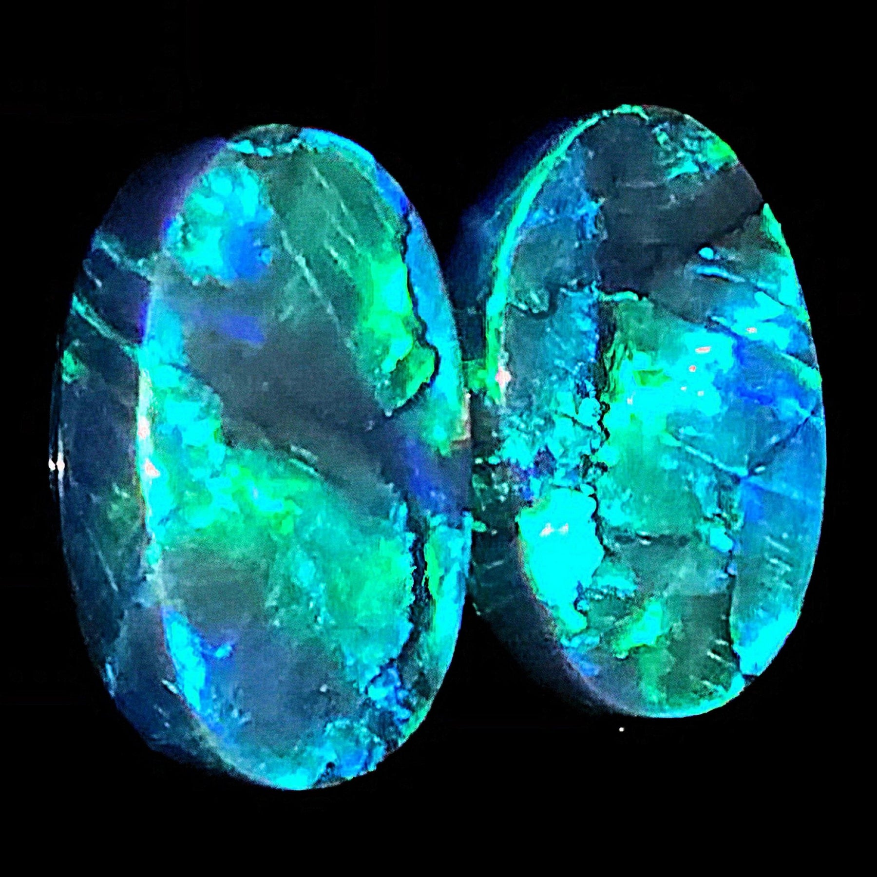 Lightning Ridge Black Opal SET! Large 29cts Rare Genuine Australian Opals, Blue Green Full Flash Opal Pair, Natural Solid Black Opal Set!