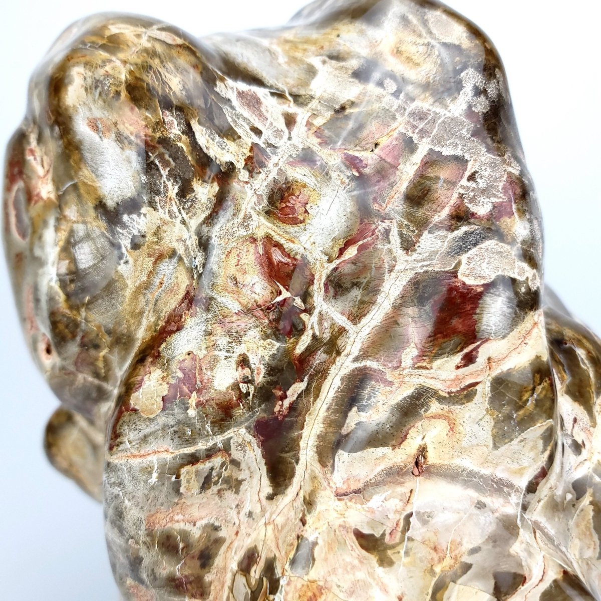 Earth Perfection💎 offers you a majestic fully polished Petrified Wood stone - with a unique appearance reminiscent of a deluxe dinosaur egg - this gem showcases a distinct wooden pattern of splendid earthly tones, varying from browns, beiges, and yellows to oranges, whites, and smoky grays, with pops of purple, pink, and red hues. It is an exciting enhancement for home décor, gifts, or a seasoned fossil collection.