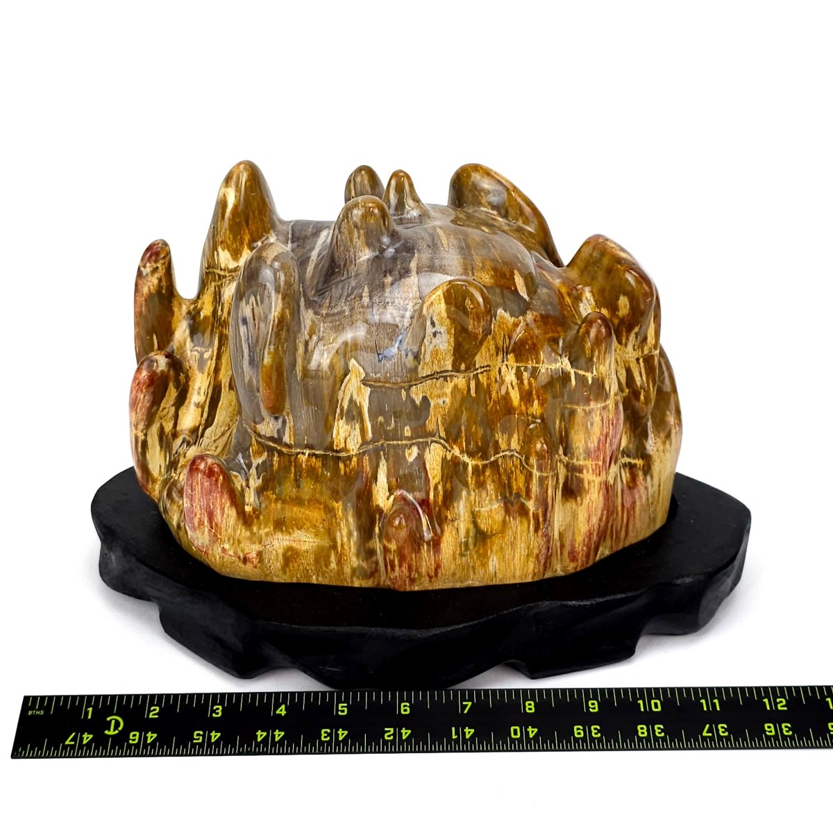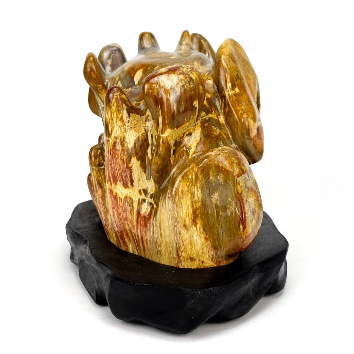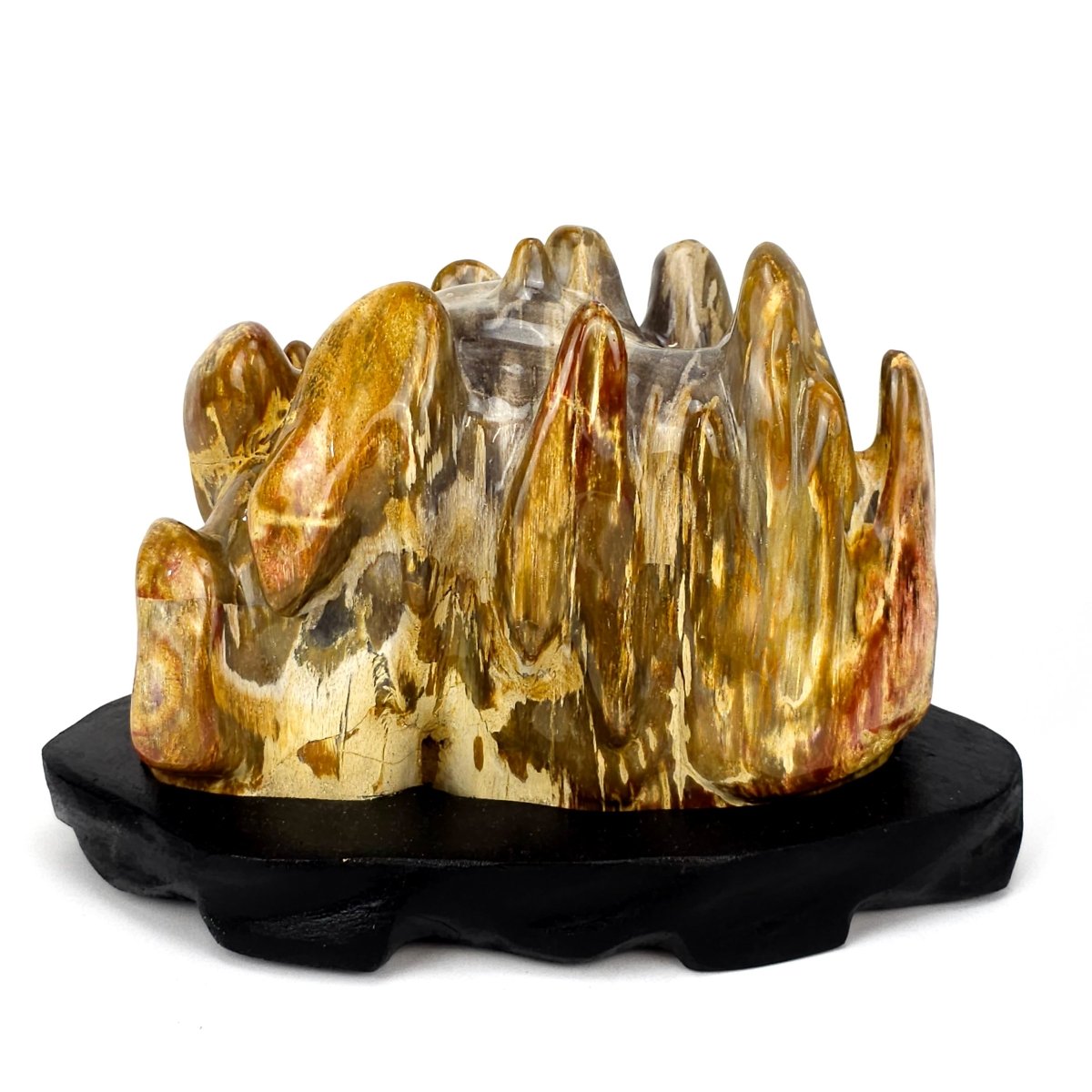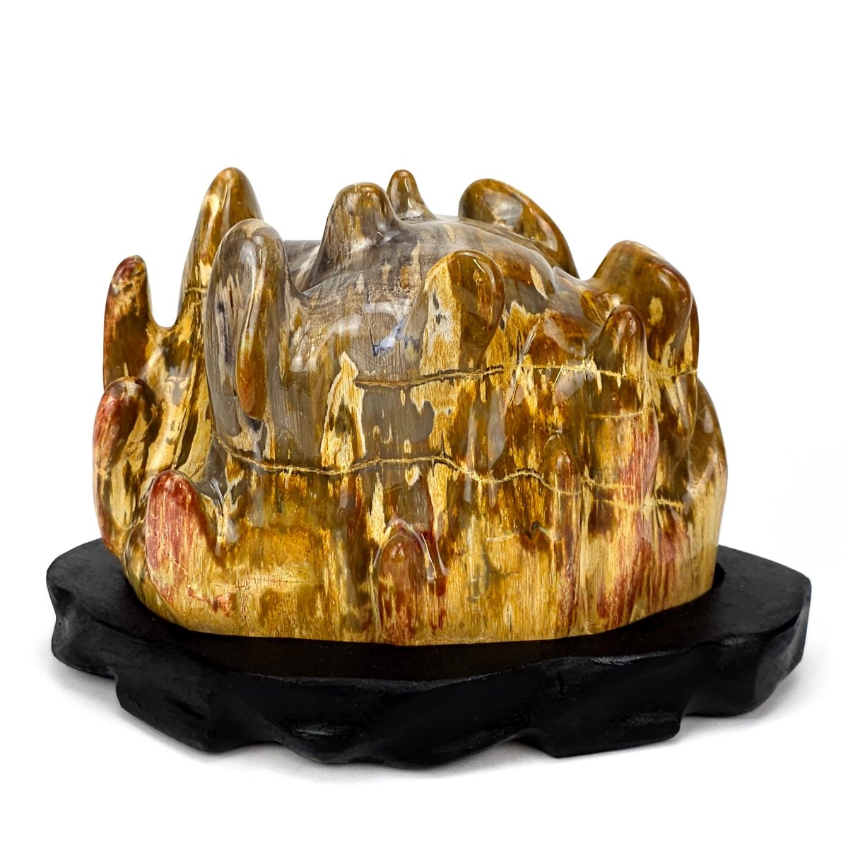 From Earth Perfection💎, this impressive Petrified Wood with red jasper accents exudes timeless natural beauty and refined elegance. Hand-polished to reveal its unique character, it displays a captivating palette of earthy beige, brown, yellow, orange, smoky gray, and cream, enhanced by vivid streaks of red and maroon. Resting on a black wooden stand, this fossilized masterpiece brings both warmth and prestige to any setting, equally at home in a luxury interior, a curated mineral collection, or as a statement heirloom.