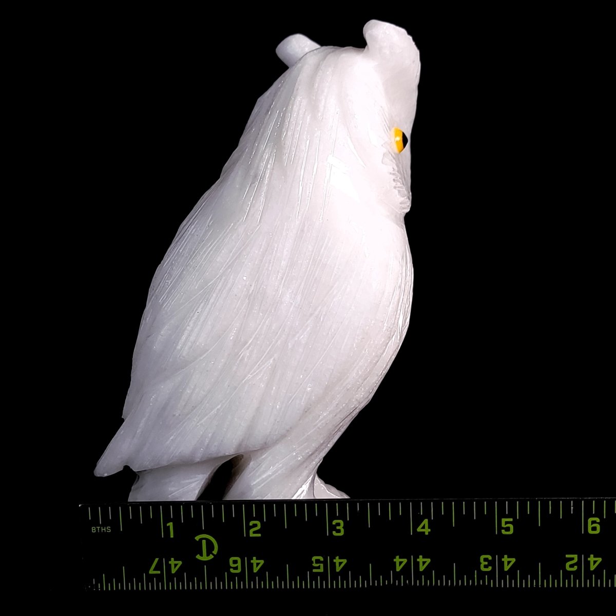White Calcite Owl Statue, Large 7" Hand-Carved Owl Figurine Gift, Luxury Decor Crystal Sculpture, Collector White Calcite Snowy Owl Carving